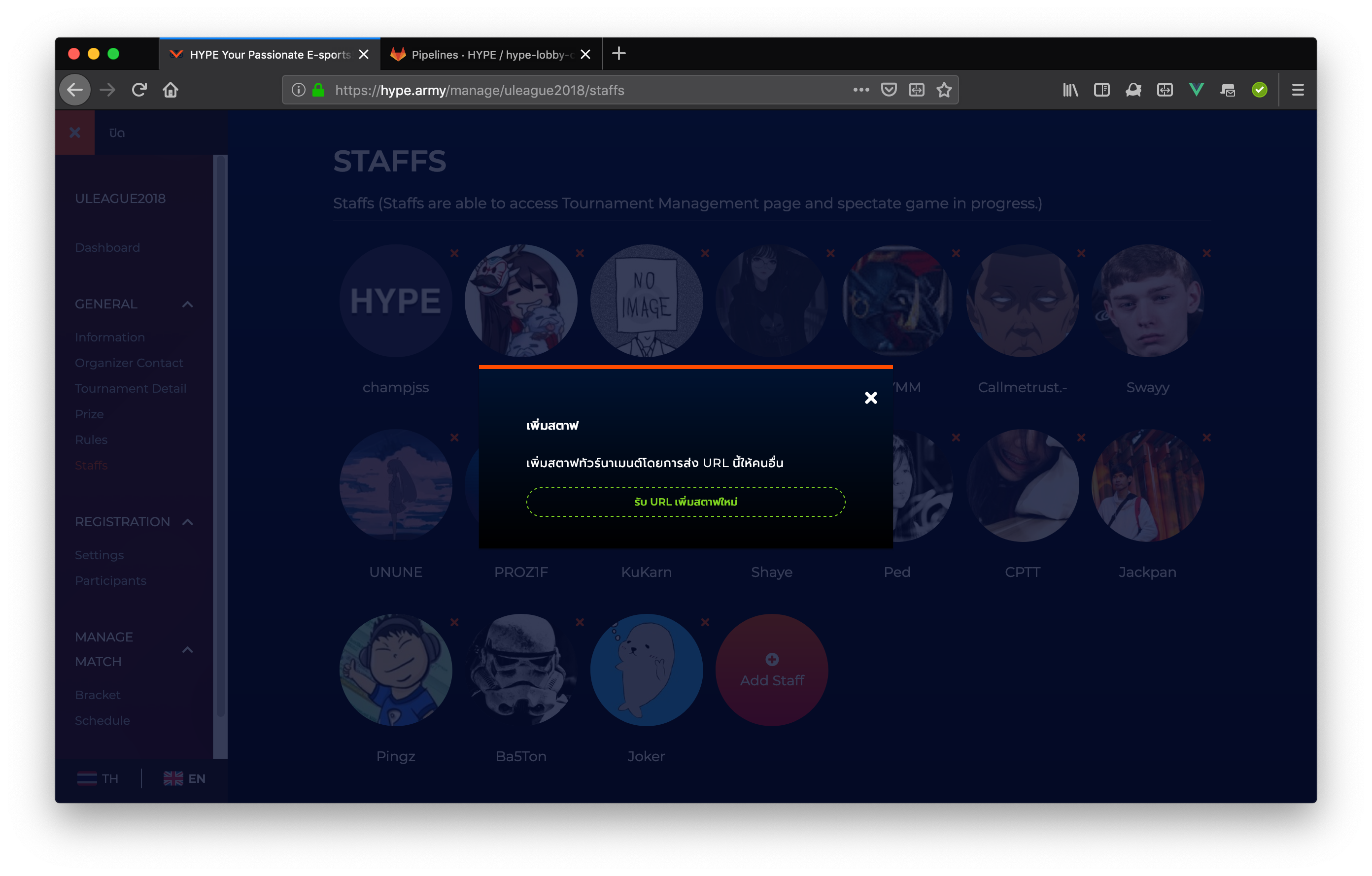 All staffs will have permissions to do everything with the tournament, just like what you can do.